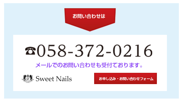 スクール専用ダイヤル: TEL 058-372-0216 (ネイル)